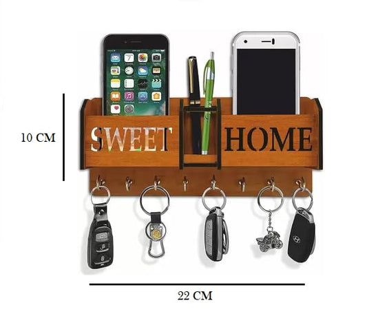 Wooden Sweet Home Key Holder with Mobile Stand and Mobile Charging